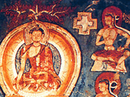 1. Felső bal: a meditáló jógi a lótuszon